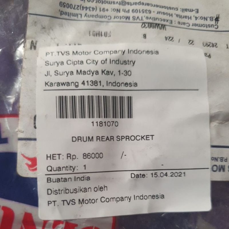 Kelebihan - Kelebihan membeli Pangkon Gir Apache 160/180, max 125 TVS. Drum Rear Sprocket di Toko ini