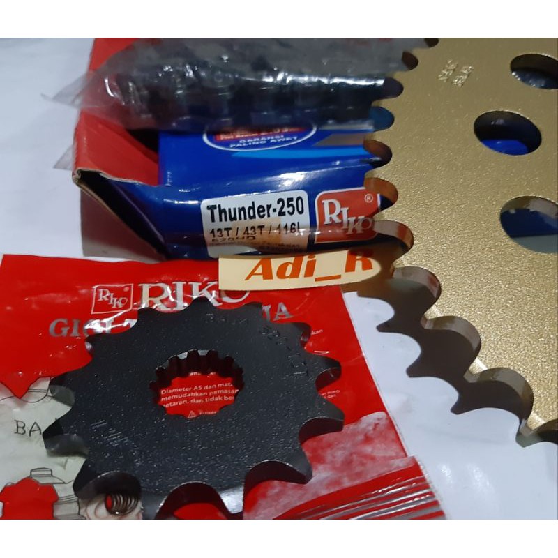 Rifan Juga punya 4 Produk lain terkait Produk GIR SET THUNDER 250 GEAR SET SPROCKET PAKET SUZUKI THUNDER 250 ORISINIL RIKO yang perlu Anda lirik karena menarik, Produk itu adalah....